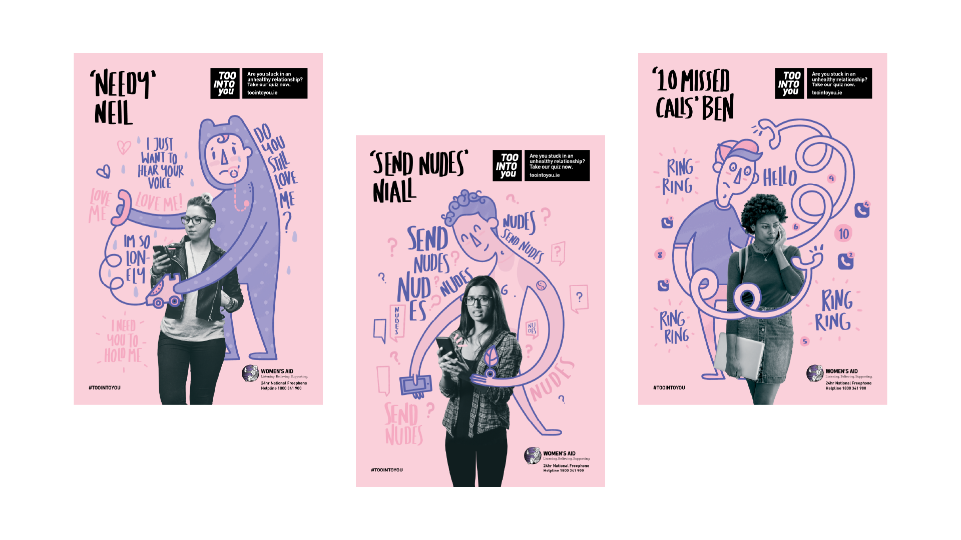 To engage young women, we made the serious topic relatable. The campaign featured characters like Needy Neil, 10 Missed Calls Ben and Send Nudes Niall — the boyfriends with traits young women could instantly recognise. Although we saw some push back online from lads named Neil or Niall, the campaign was a success.